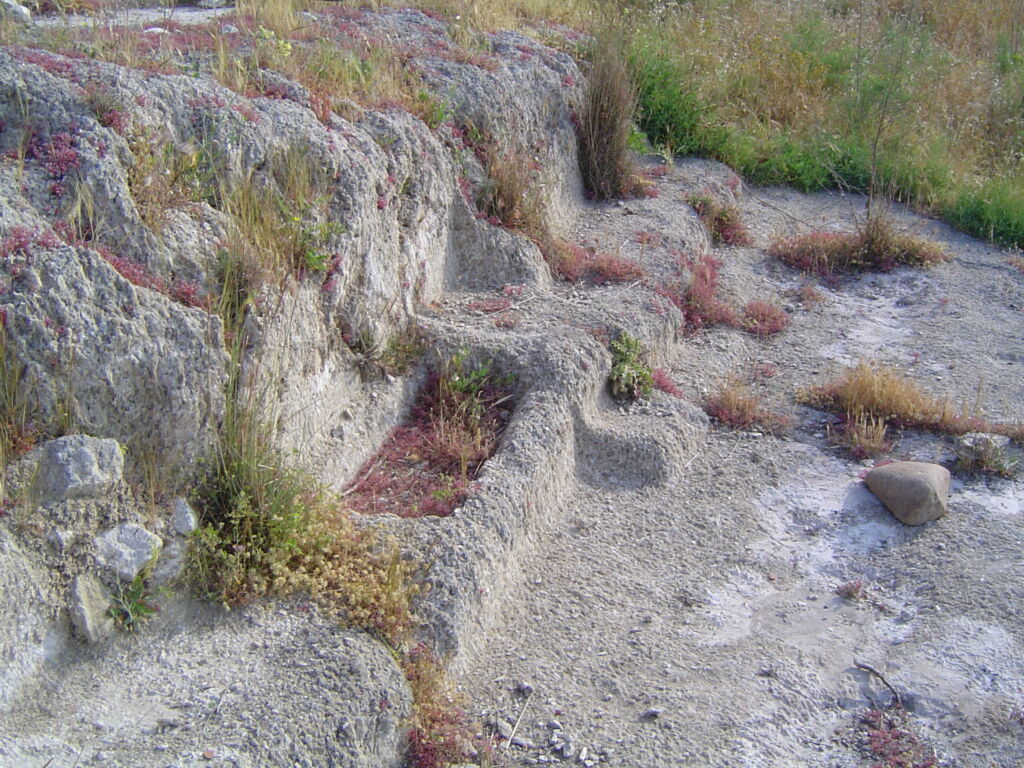 Il territorio della Sicilia centro-meridionale e, in particolare, il comprensorio della provincia di Caltanissetta è ricchissimo di risorse mineralogiche, tra cui il gesso, l’alabastro e il gesso alabastrino o selenitico, già note sin dall’antichità. Monte Raffe di Mussomeli sorge alla confluenza tra i fiumi Salito e Gallo d’Oro a sua volta compreso nel territorio geologicamente noto come “bacino di Caltanissetta” e geograficamente delimitato dal corso dei fiumi Salso e Platani ed è costituito da Gessi amorfi, saccaroidi o a grossi cristalli, associati a straterelli di argille bituminose (Fig. 1). La presenza di questi affioramenti giustifica l’uso cospicuo di questo minerale in diversi ambiti e contesti archeologici ed in particolare per contenitori di unguenti, gli alabastra, utilizzati in contesti funerari, ma anche in contesti abitativi, civili e religiosi dove erano utilizzati probabilmente nelle pratiche lustrali o di purificazione. Esemplari sono stati rinvenuti durante gli scavi di Sebastiana Lagona nella zona a Nord Est della cosiddetta “Basilica”, un’area costituita da un grande altare in parte costruito, in parte scavato nel banco gessoso, e da una banchina anch’essa scavata nella roccia che corre per tutto il perimetro interno dell’edificio; ai lati dell’altare e alla base della banchina sono state realizzate una o più vasche per i riti di purificazione alimentate, attraverso quattro canalizzazioni, da cisterne o vasche di raccolta poste nella parte alta all’interno dei vani pertinenti all’abitato che sorge a mezza costa su Monte Raffe. Questo è stato datato tra la metà del V e la fine del IV sec. a.C., e dovette essere piuttosto esteso e articolato su più terrazzamenti. Tra i materiali di pregio, realizzati in gesso, si ricorda la piccola testa maschile (Fig. 2), un prodotto del più raffinato stile ellenistico forse influenzato dalle correnti artistiche allora imperanti a Siracusa e ad Agrigento, oggi esposta nell’Antiquarium di Palazzo Sgadari a Mussomeli, datata al IV sec. a.C. e genericamente indicata come proveniente dal santuario. A questi oggetti si aggiungono, inoltre, almeno 6 alabastra rinvenuti nel c.d. “scarico di terrecotte”, riferibile, probabilmente, ad un deposito di oggetti sacri provenienti dal santuarietto rupestre scoperto da Pietro Griffo, tra il 1956-57, al di fuori delle mura e non più individuabile. La presenza di questi materiali e una discreta quantità di elementi in gesso alabastrino, di varia forma e dimensione, che possono essere considerati scarti di lavorazione, provenienti da scavi svolti tra il 2007 e il 2008 dalla Soprintendenza BB.CC.AA. di Caltanissetta che hanno messo in luce alcune strutture pertinenti ad un articolato edificio di età dionigiana, permettono di far ipotizzare un’area produttiva specializzata nell’estrazione, lavorazione del gesso alabastrino e successiva vendita dei manufatti. Tra questi elementi in gesso, un frammento è particolarmente interessante perché reca, su una delle facce, delle sottili linee orizzontali e dei segni incisi che, sono state interpretate come un caso di pre-scrittura (Fig. 3). Nel sito, il banco gessoso fu sfruttato anche per la realizzazione delle sepolture, la cui copertura poteva avvenire sia mediante lastre litiche, sia mediante l’uso di coppi e tegole in terracotta, spesso di riuso. Il confronto con la vicina Vassallaggi, nelle cui necropoli è considerevole il numero di alabastra rinvenuti, permette di affermare che soprattutto nel corso del V secolo a.C., l’attività di estrazione e lavorazione del gesso alabastrino dovette costituire per questi centri della Sikania una risorsa economica fondamentale da cui trarre ricchezza e benefici.
