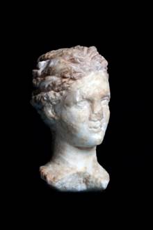 Fig. 2 Piccola testa maschile in gesso alabastrino dal santuario (IV sec. a.C.)