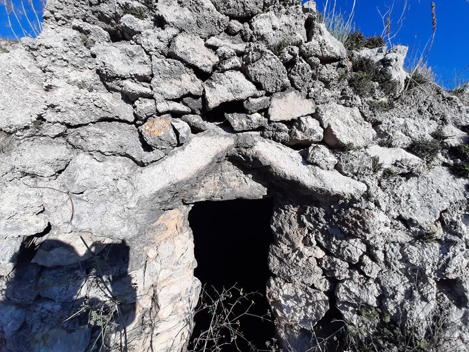 La pianta del quarto impianto è del tutto analoga a quella degli ultimi due, tuttavia nel vano che unisce i due forni sono presenti due infrastrutture non presenti negli altri: a destra dell’ingresso si osserva una struttura semi-circolare destinata a contenere del materiale e addossata al muro orientale. A sinistra dell’ingresso del forno principale, inoltre, si individuano i resti di un fornello o un forno con un comignolo che indirizzava i fumi all’interno della camera di cottura (Fig. 3). La quinta fornace, posta ai margini orientali dell’impianto si conserva parzialmente, rimane traccia di alcuni fori per lo sfiato e, forse, un’apertura per il carico e lo scarico del materiale dall’alto. Nel banco gessoso prossimo alla calcara, infatti, si osservano almeno tre gradini intagliati che dovevano collegare i due livelli e agevolare le operazioni di cottura. Ancora in discrete condizioni di conservazione è il sesto impianto da ovest. Si conserva parzialmente la pianta e due terzi dell’elevato di una doppia camera di combustione. Mentre l’ingresso è segnato da un vano rettangolare di raccordo che collega i due forni e in cui operava e forse viveva il mastro gessaio. In prossimità della vallata del Naro si sviluppa una sequenza di calcari e gessi sfruttata fin dall’antichità. Le sue pendici, infatti, sono interessate da diverse sepolture a forno che rimandano alla preistoria, mentre più a nord è ubicato il sito solfifero di contrada Falsirotta. L’area è segnata dalla presenza di un unico impianto per l’estrazione e la lavorazione del gesso. Sull’altipiano, infatti, in pochi metri di distanza, si leggono ancora oggi le rovine della calcara. Della casa di residenza del gessaio, a pianta quadrangolare a cui è addossato un piccolo forno da pane e, subito dopo, si osserva una piccola fossa di scarico, ormai colma anche di materiale organico. Ad una rapida occhiata si possono osservare, accanto a frammenti di anfore medievali e a tegole piane greche, mescolati ai coppi del tetto, vi sono numerose piccole bottiglie su cui si può leggere: “Urodonal”. Si tratta di un medicinale utilizzato nel primo trentennio del ‘900 per curare la gotta.