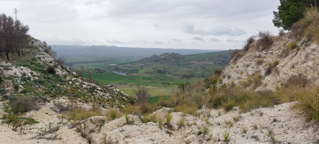 Il percorso ambientale dominato dalla presenza del gesso è esteso 5 km. Esso attraversa tutta la collina a sud dellabitato, raggiugendo Mineo. Le piante selvatiche sono tantissimi me: agave, ampelodesmo, rosmarino, timo, cappero, finocchio selvatico, asparagi, asfodelina lutea, borragine, rosa canina, tarassaco, ortica, malva, cardospinoso, asfodelo o in dialetto “Firrazzeddu” comunemente detto anche “Vastuni di San Giuseppe”. Nel territorio insistono in località “o Cummintazzo” i ruderi di un antico monastero (Figg. 1-6).​​​​​
