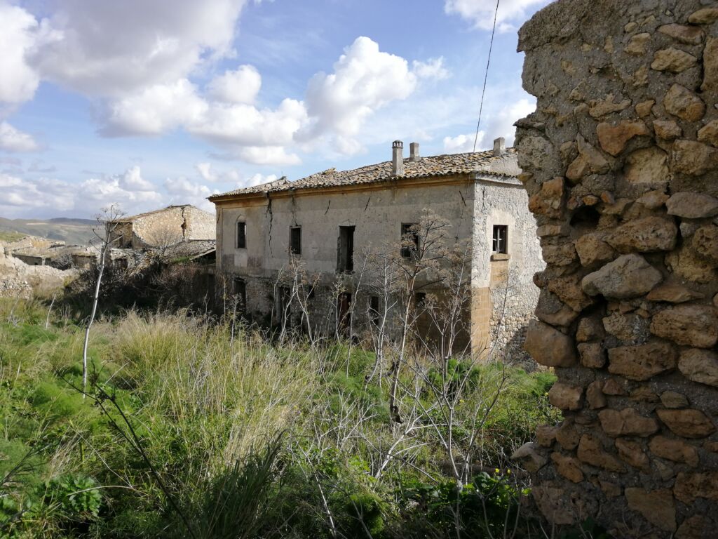 Agli inizi del Seicento, lo stato nisseno comprendeva complessivamente 42 feudi, distribuiti su un’area di 724.12 aratati. Tra questi compare il feudo Cicuta Nuova di 14.2 aratati, appartenuto ai Moncada e acquisito dalla famiglia Testasecca nella seconda metà dell’Ottocento (Figg. 1-4). Qui vi era situata una grande masseria con doppia corte delimitata da fabbriche le cui strutture denotano l’uso diffuso del gesso. Le coperture sono realizzate prevalentemente con struttura portante lignea, disposta alla lombarda con le travi appoggiate sui muri a timpano. Chiodati sulle travi vi sono ginelli o mezzi ginelli, disposti a distanza regolare, tra i quali è ancora distinguibile un massetto in gesso di circa 4 cm di spessore. Non mancano resti di coperture a cannizzata con canne intere disposte parallelamente tra loro, poste sopra la travatura principale con un sottile strato di malta in gesso sulla superficie estradossale finalizzato a conferire maggiore rigidezza e protezione alla struttura. Il tegolato in coppi siciliani era disposto direttamente sull’estradosso. L’edificio principale della prima corte è costituito dal palazzetto padronale. Il suo prospetto principale presenta una muratura in pietrame ricoperto da intonaco di gesso. Il rivestimento è realizzato con una malta piuttosto grezza e sono chiaramente visibili cristalli di piccola e media dimensione.