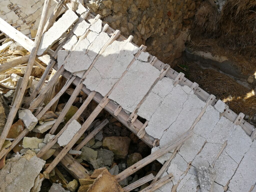 Fig. 2 Masseria Cicuta Nuova, resti di un solaio con impalcato di ginelli e massetto di gesso (Foto di L. Torregrossa)